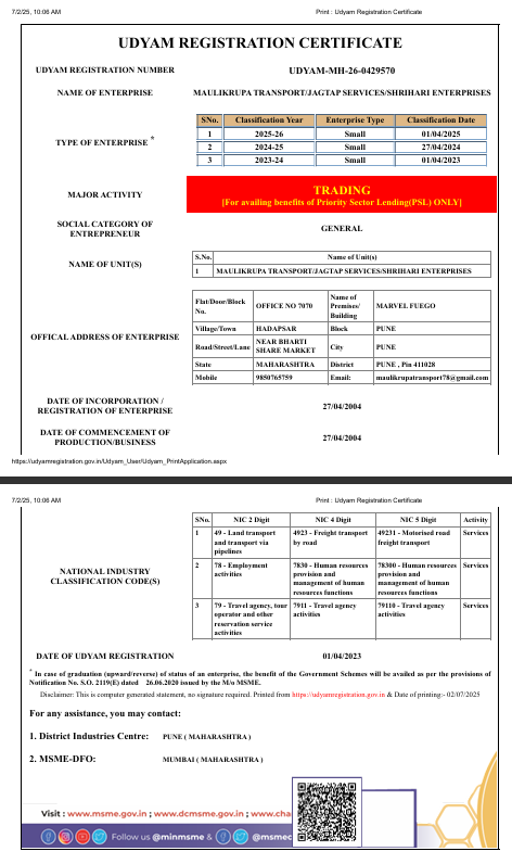 Registered MSME entity supporting industrial service operations.