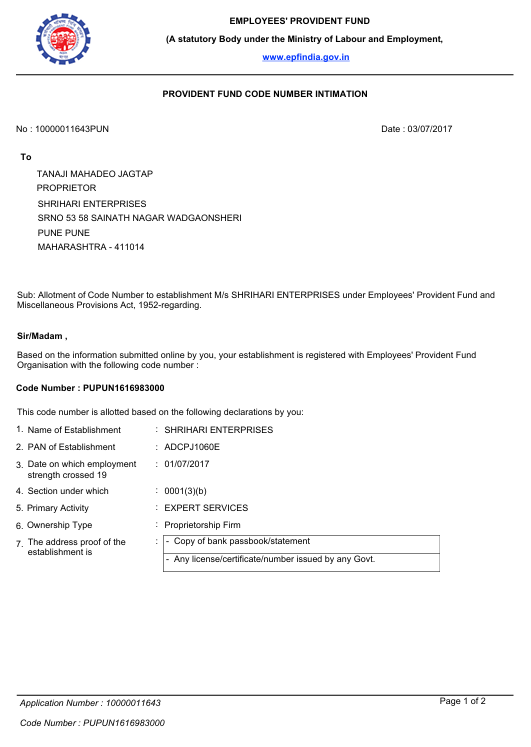 Provident Fund registration ensuring workforce financial security.
